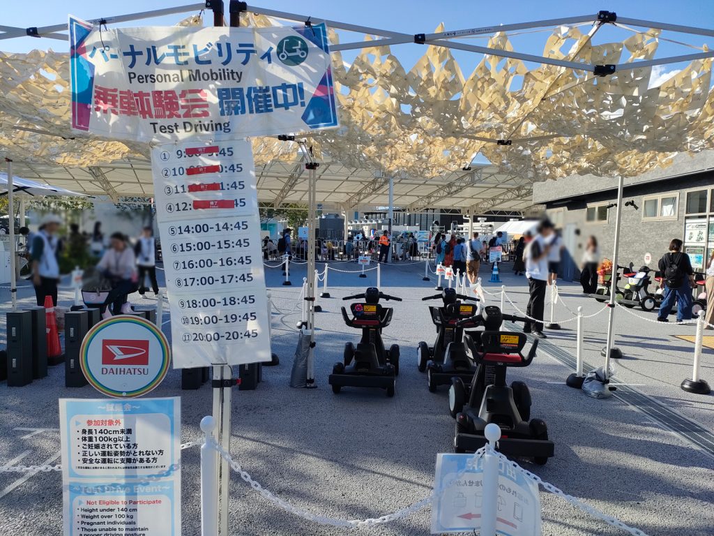 モビリティ体験は東ゲート入ってすぐ、東ゲートを背に大屋根リングに向かって右手にあります。