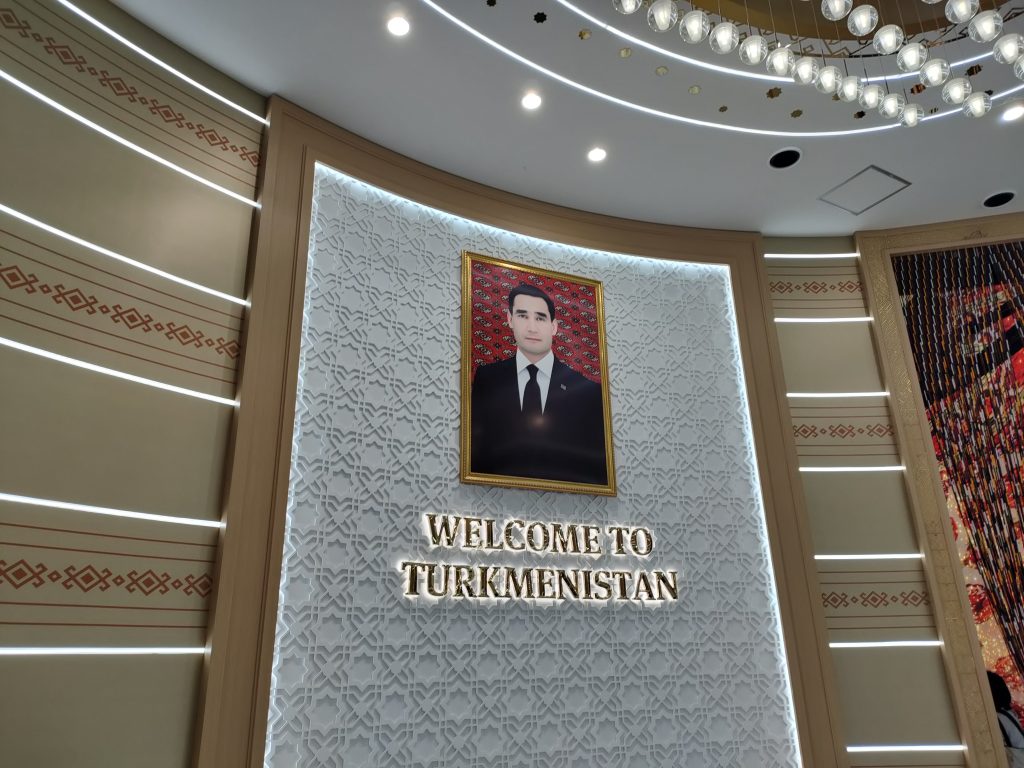 パビリオンの入り口正面で、トルクメニスタンの大統領の肖像が!