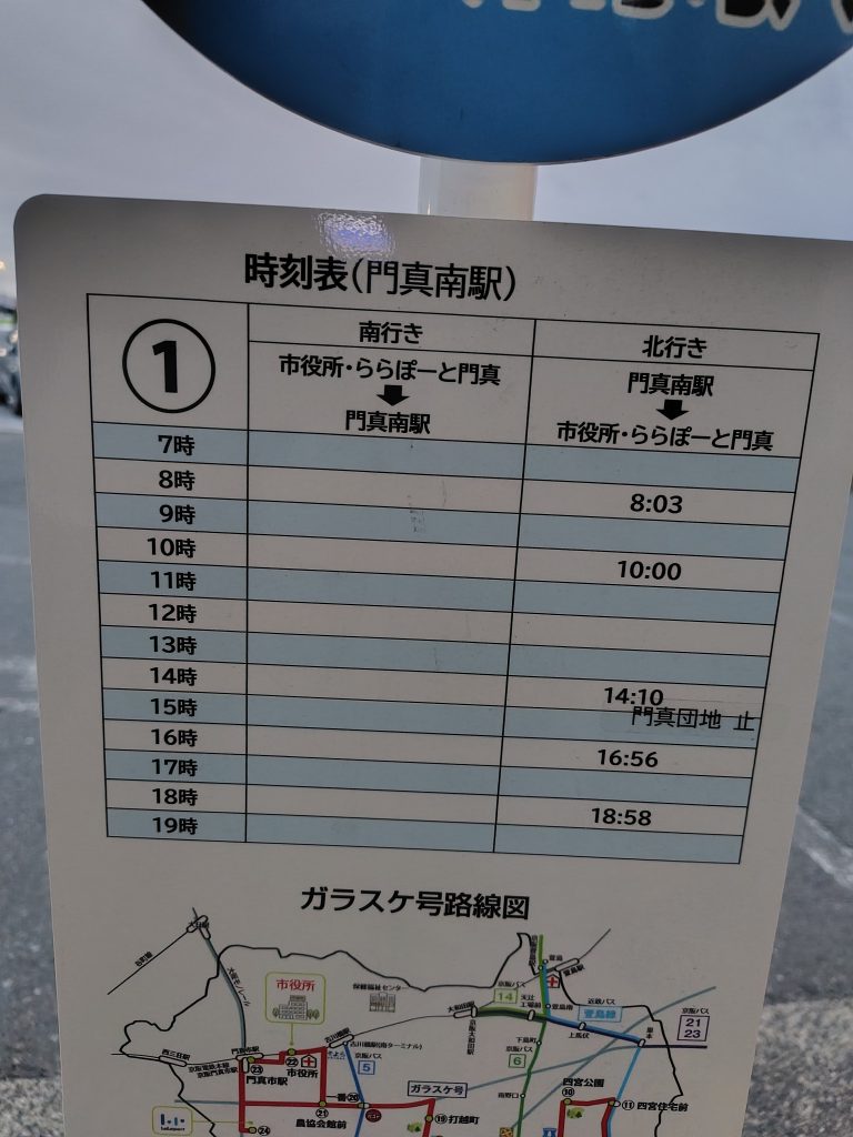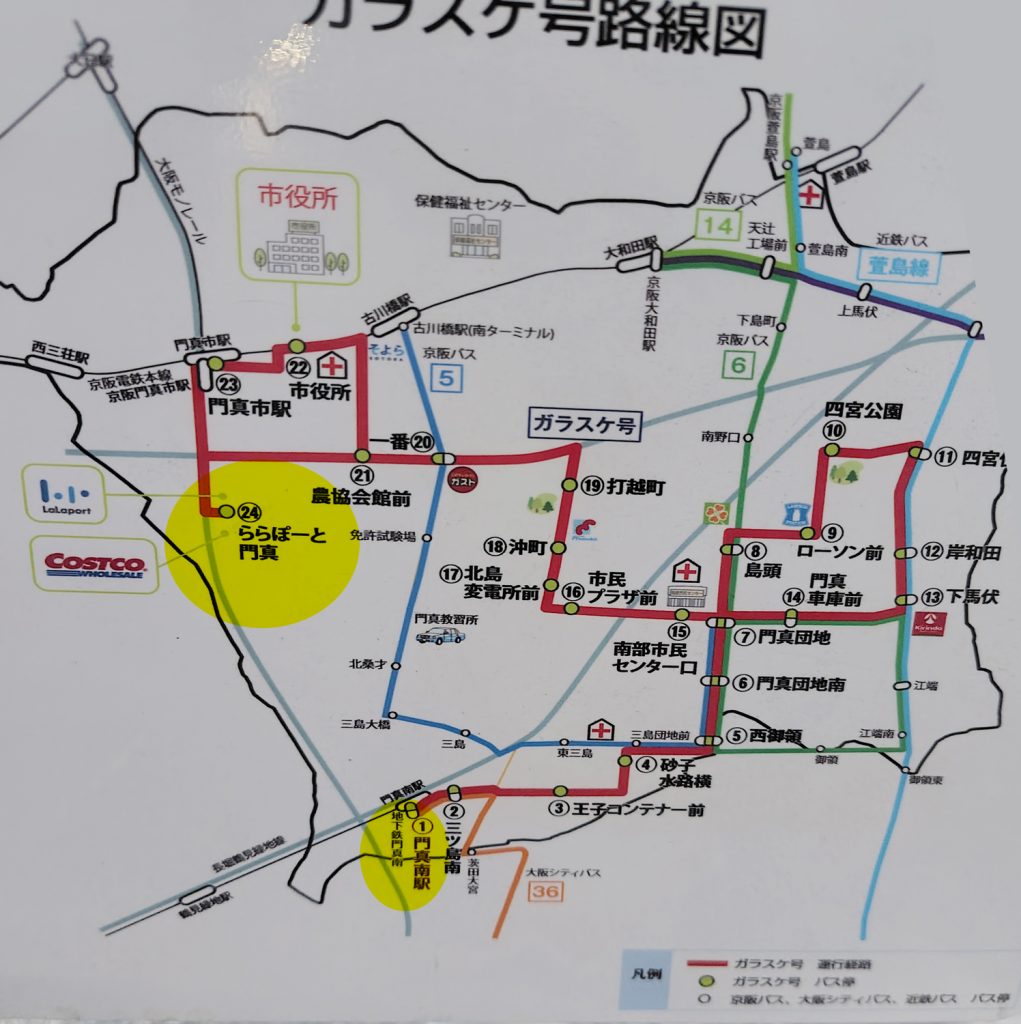 循環バスに対しての不満ではなくて、単純に「ららぽーと門真」にいくのにガラスケ号を利用すると考えたら、いろいろと懸念点があったので書いてみます。