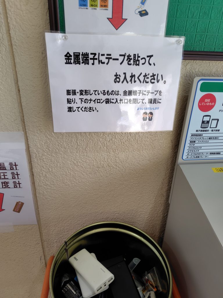 先ほどの張り紙にもありましたが、基本的には端子部分にテープを貼って捨てます。